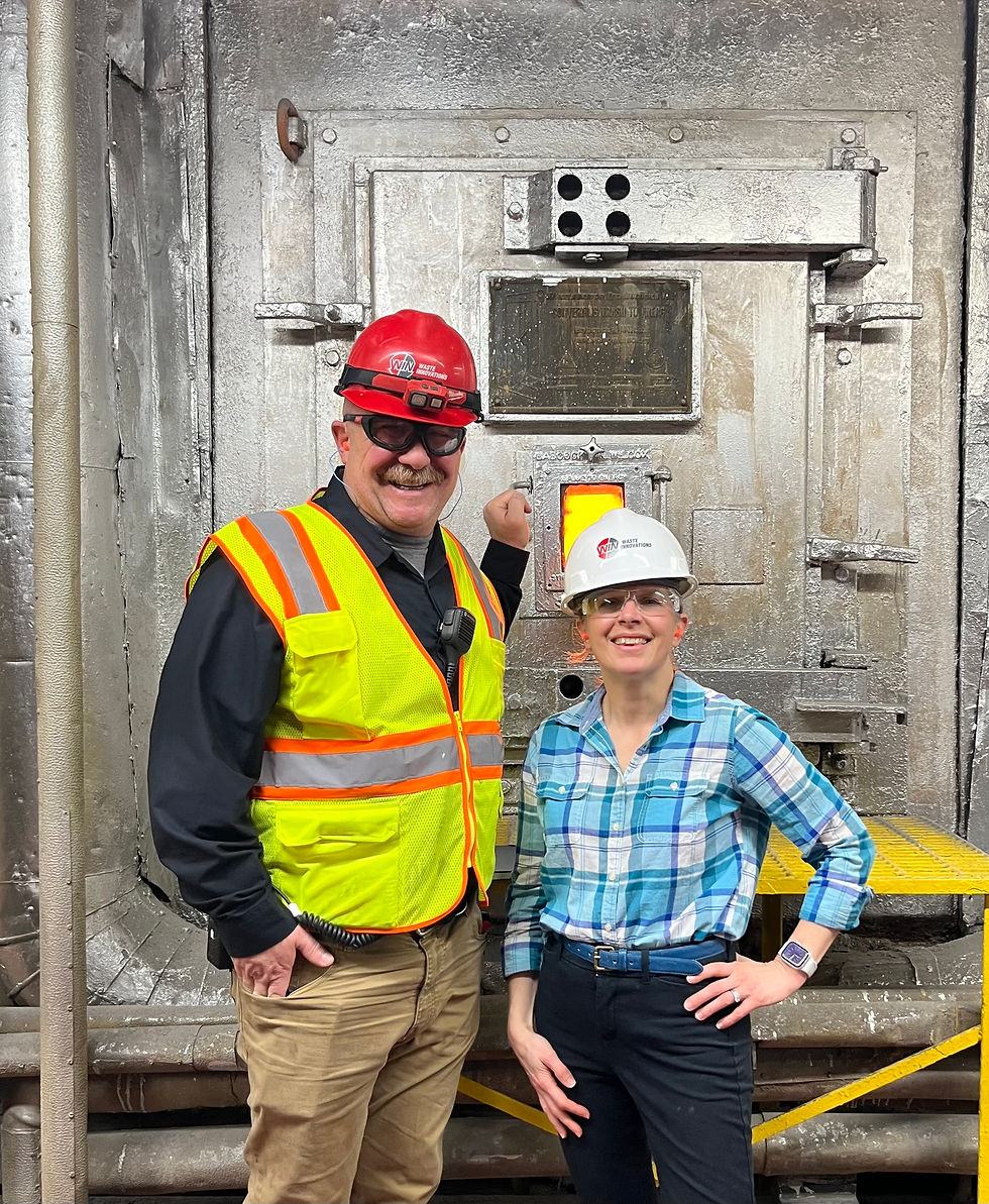 Outstanding tour of the Win-Waste Facility off Exit 17. I feel so much better having gone and learned about the people working there and the facility we can all be proud of. Many thanks to Councilor Todd for making the connection! The diagram includes a person standing by the viewing hatch of the furnace where I am standing with Plant Manager Kevin Wing. You can see the window blazing above my hard hat. He agreed to burn our invasive bittersweet!